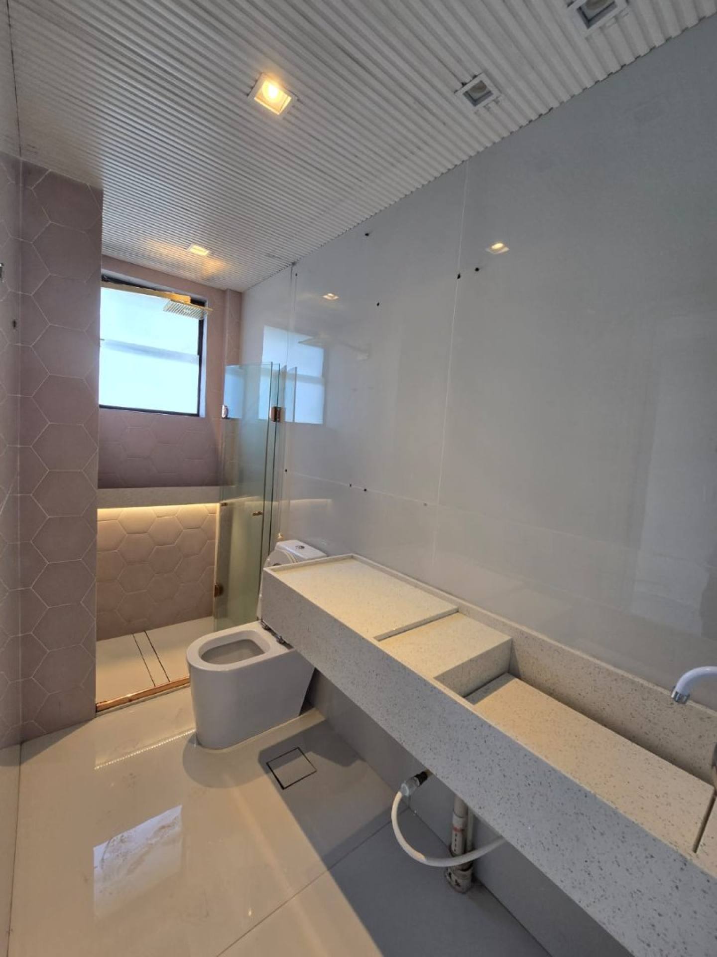 descoberto para visitantes, recepção, hall de serviço, hall social, elevador social, elevador de serviço, guarita com célula de segurança, hall social,