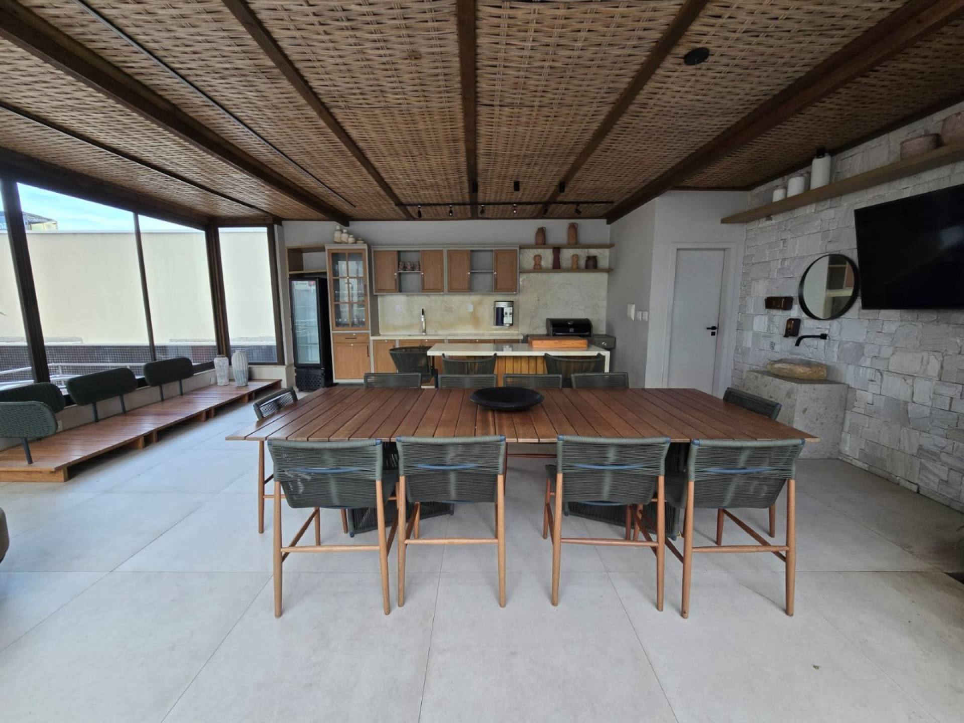 espaço grill, sala gourmet, sala de estar, sala de banquetes, hall social,